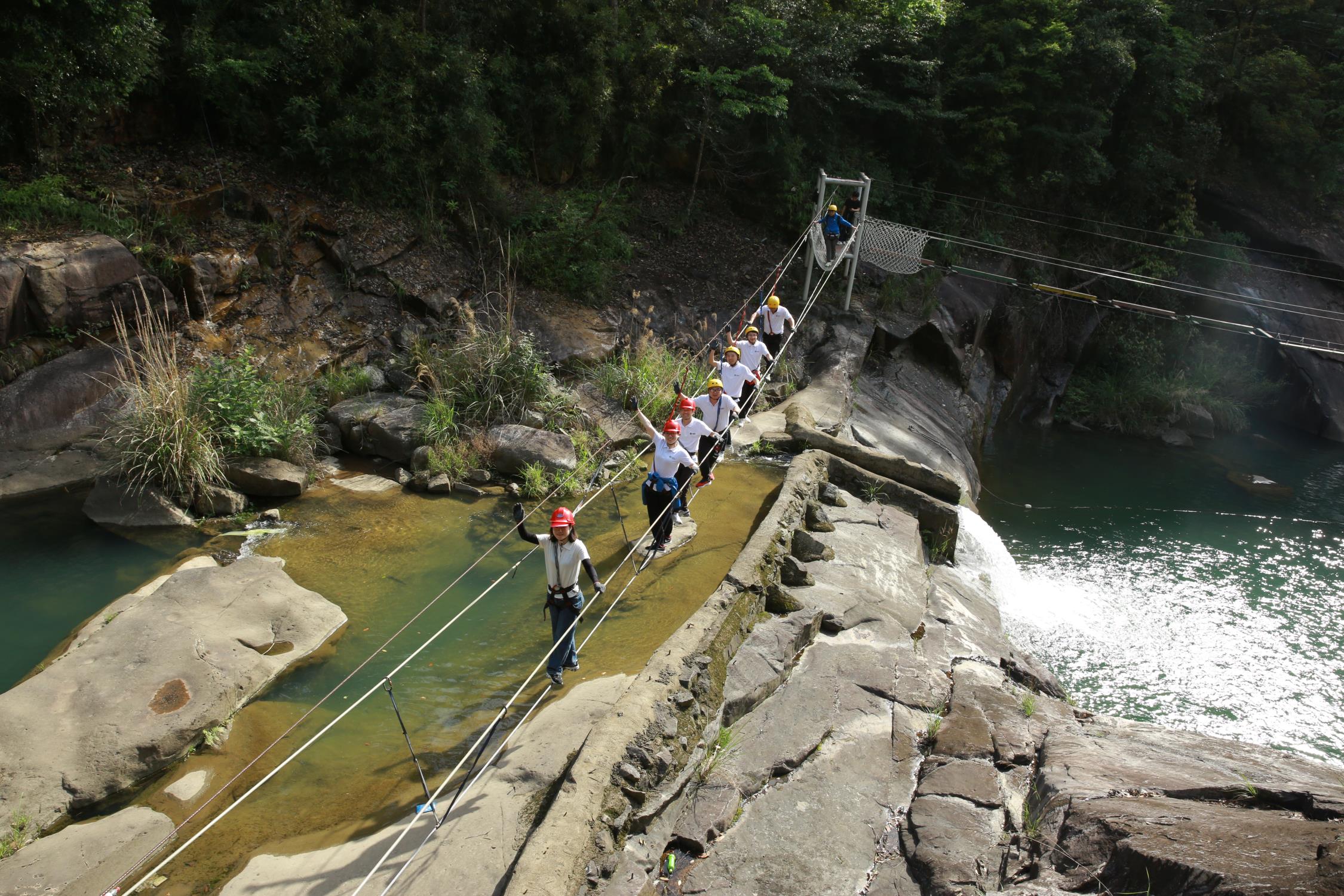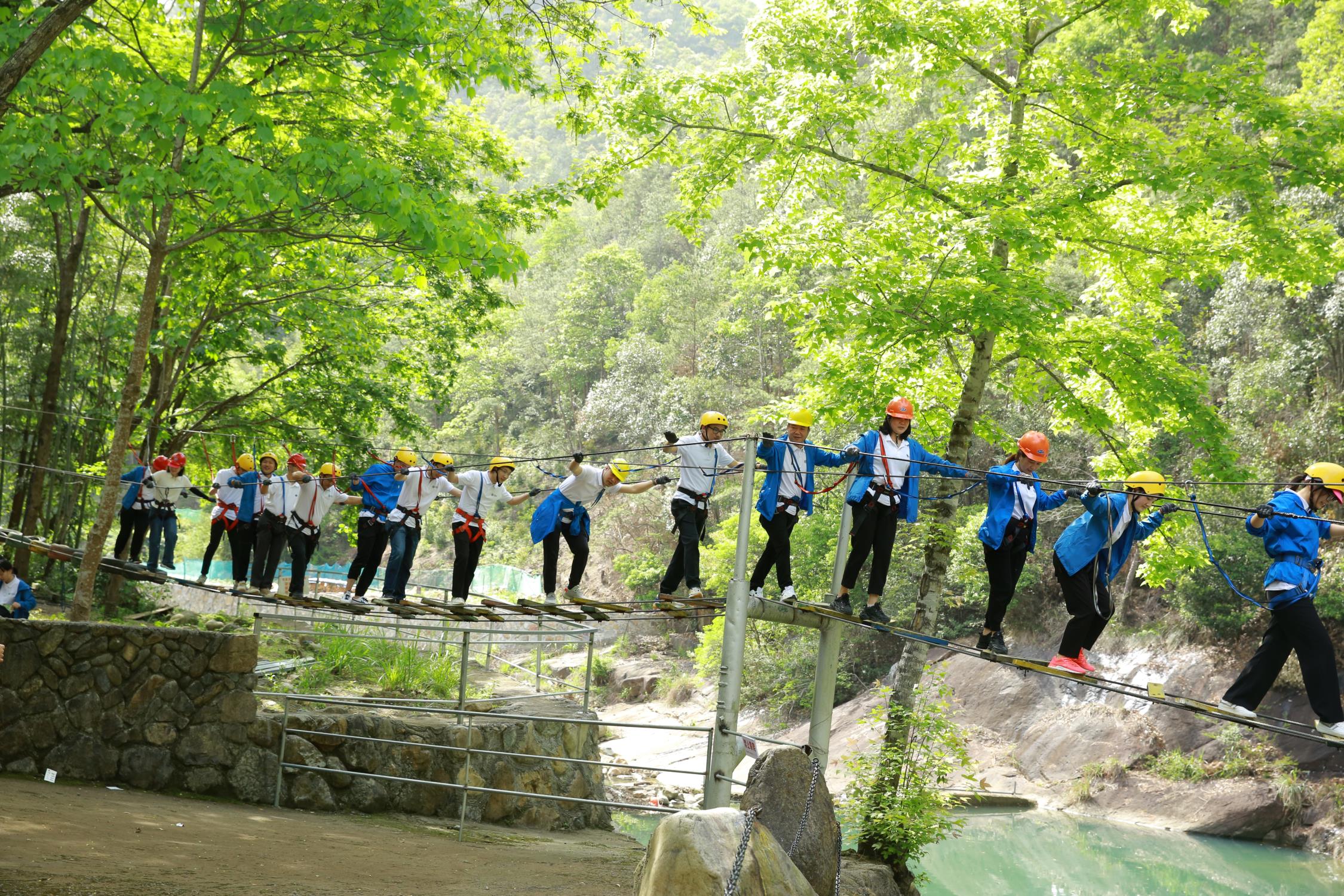 在峽谷拓展項目中,員工們穿上安全設備,連上繩索,走在懸空的木板上、鋼絲繩上,攀巖在陡峭的巖石上,穿越峽谷,挑戰極限,感受著叢林自然景觀,體驗緊張刺激的拓展項目。特別是高空滑索體驗,是一次勇敢者的挑戰,讓員工們放飛自我,感受自由飛翔,面對白云藍天,飛躍高山流水。