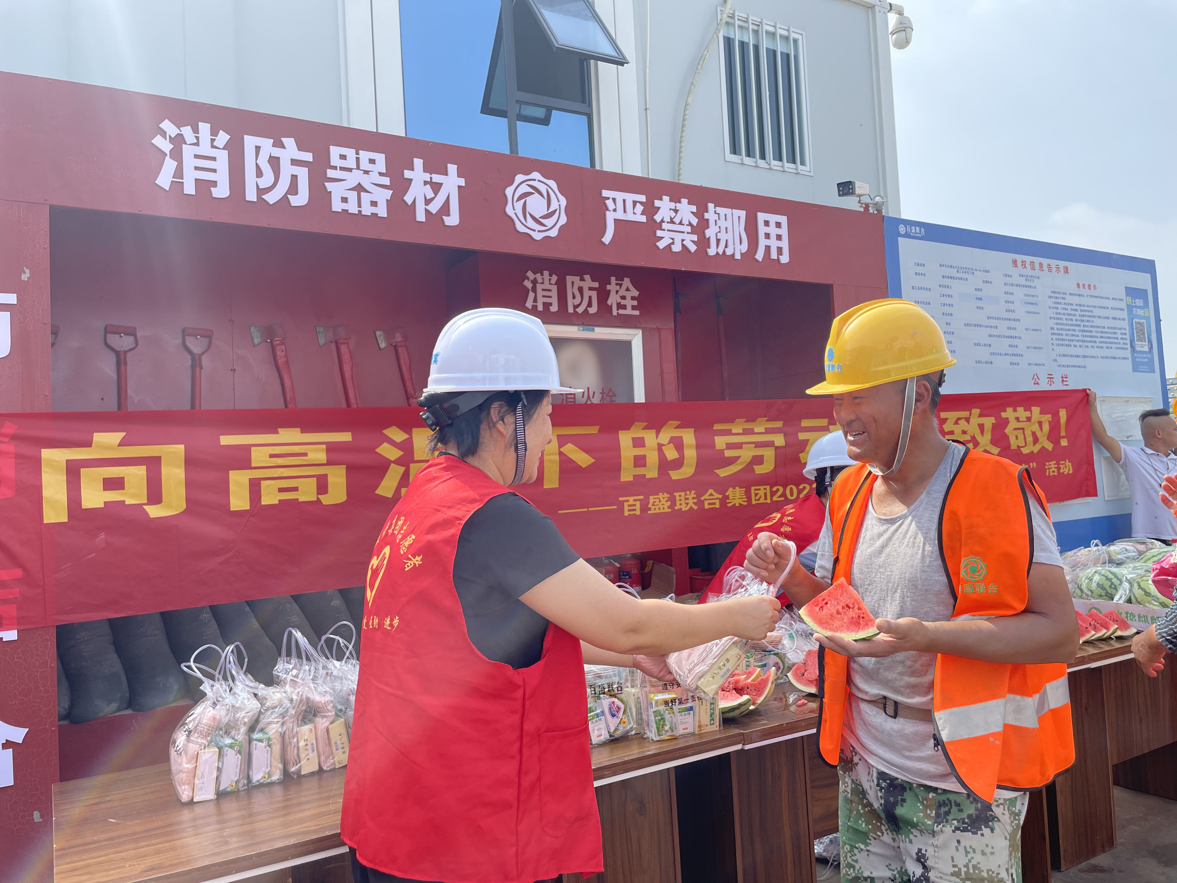 一份清涼,一句誠摯的“辛苦了”,這既是對高溫勞動者的尊重和敬意,更飽含著百盛的深情人文關懷。“夏日送清涼”已成為集團多年來的一項常態化的工作舉措,將防暑用品送到一線崗位,慰問高溫天氣中堅守在一線的工作人員,極大地鼓舞了一線工作者的士氣,為項目工程推進提供了有效的保障。