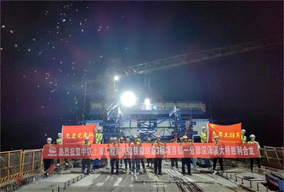 據悉,深澤溪大橋全長209.5米,由中鐵上海局杭溫3標項目一分部承建,采用掛籃懸臂式澆筑方式,嚴格把控梁體線形與應力,確保合龍前兩懸臂相對高差在1厘米以內。由于大橋連接小嶺隧道及仰頭隧道,跨越S218、S219省道、深澤溪及人行步道。針對施工區域來往車輛、人流密集、安全風險較高的情況,項目部積極與當地交管部門聯系,臨時封閉人行步道,并在跨省道區域設置交通引導警示牌,為施工開辟綠色通道。同時,安排管理人員對施工全過程進行旁站監督,并多次組織安全教育培訓,在大型模板吊裝、0#塊施工、掛籃行走等關鍵工序進行班前安全、技術交底,保證安全質量可控。