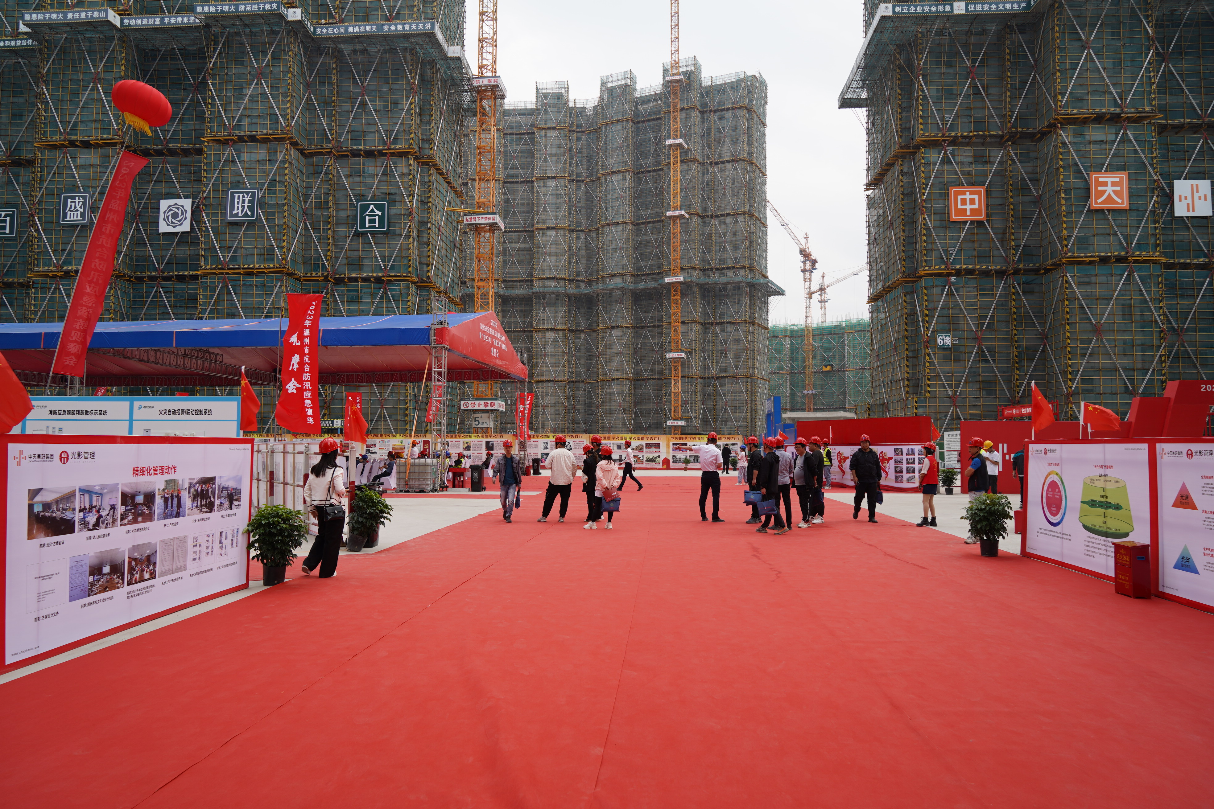 為深入貫徹落實黨的二十大精神,充分發揮黨建在工程建設活動中的引領作用,切實推動項目高質量履約,5月12日,由百盛承辦的龍灣區建筑施工質量安全標準化暨“紅色工地”“清廉工地”創建現場觀摩會在我司蒲州街道嶼田城中村改造一期工程成功舉行。來自市住建局,區住建局、應急管理局、參建單位及其他建筑企業代表400余人參加觀摩會。
