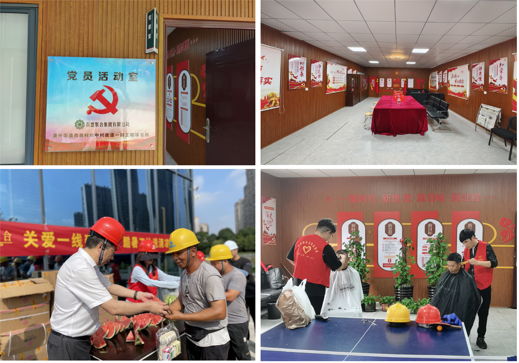 蒲州街道嶼田城中村改造一期工程代建項目是龍灣區政府的重點民生工程項目。早在2021年建設初期,項目部第一時間就設立項目臨時黨支部,堅持圍繞“業務抓黨建,抓好黨建促發展”的原則,全面開展“六有一好”建設內容,即有組織、有制度、有教育、有活動、有場所、有標識,作用發揮好“紅色工地”“清廉工地”創建活動,推進黨建強工程優。在創建“紅色工地”過程中,創新文體活動,營造全新的項目施工和諧關系,切實關心員工的工作及業余文化生活。項目部設立黨員活動室、職工書屋、乒乓球室等娛樂休閑場所,開展“夏日送清涼”“愛心義剪進工地”“反詐宣傳”等志愿活動關懷員工,開展“開工第一課”“技能比賽”等活動調動員工積極性,增強團隊凝聚力,不斷提高工程質量水平。