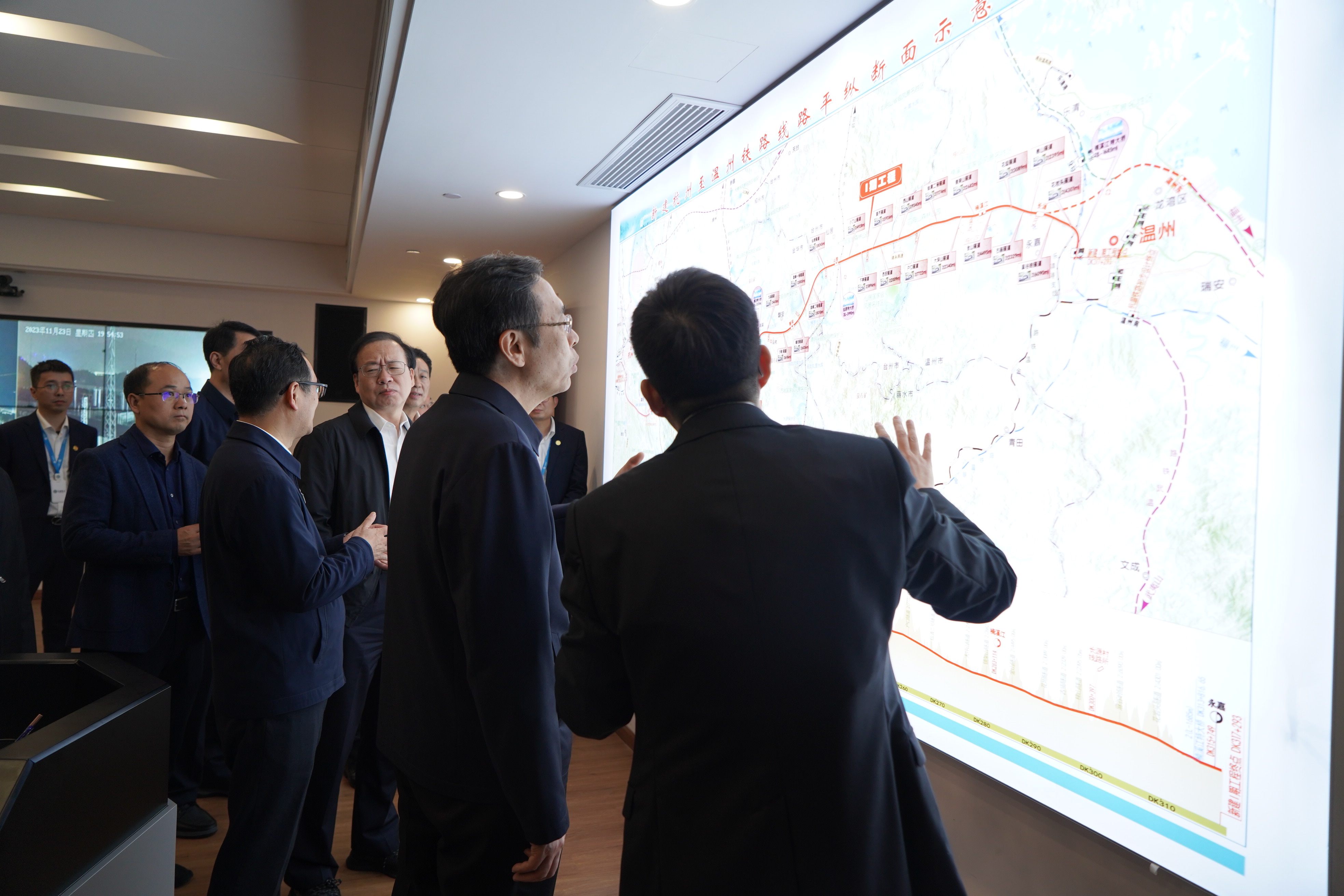 在集團(tuán)杭溫作戰(zhàn)指揮室,通過現(xiàn)場(chǎng)匯報(bào),調(diào)研組一行詳細(xì)了解了百盛近年來聚焦基建行業(yè),在投建營(yíng)、全產(chǎn)業(yè)鏈、全生命周期運(yùn)維服務(wù)等方面的發(fā)展成就,聽取了杭溫鐵路建設(shè)改革成果,并與杭溫現(xiàn)場(chǎng)施工人員連線,了解項(xiàng)目現(xiàn)場(chǎng)最新情況。
