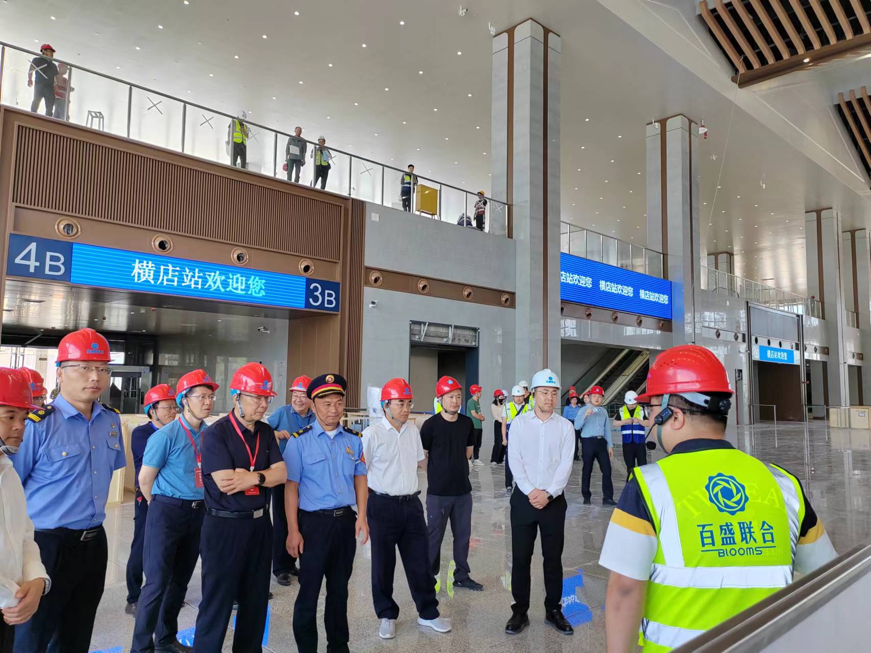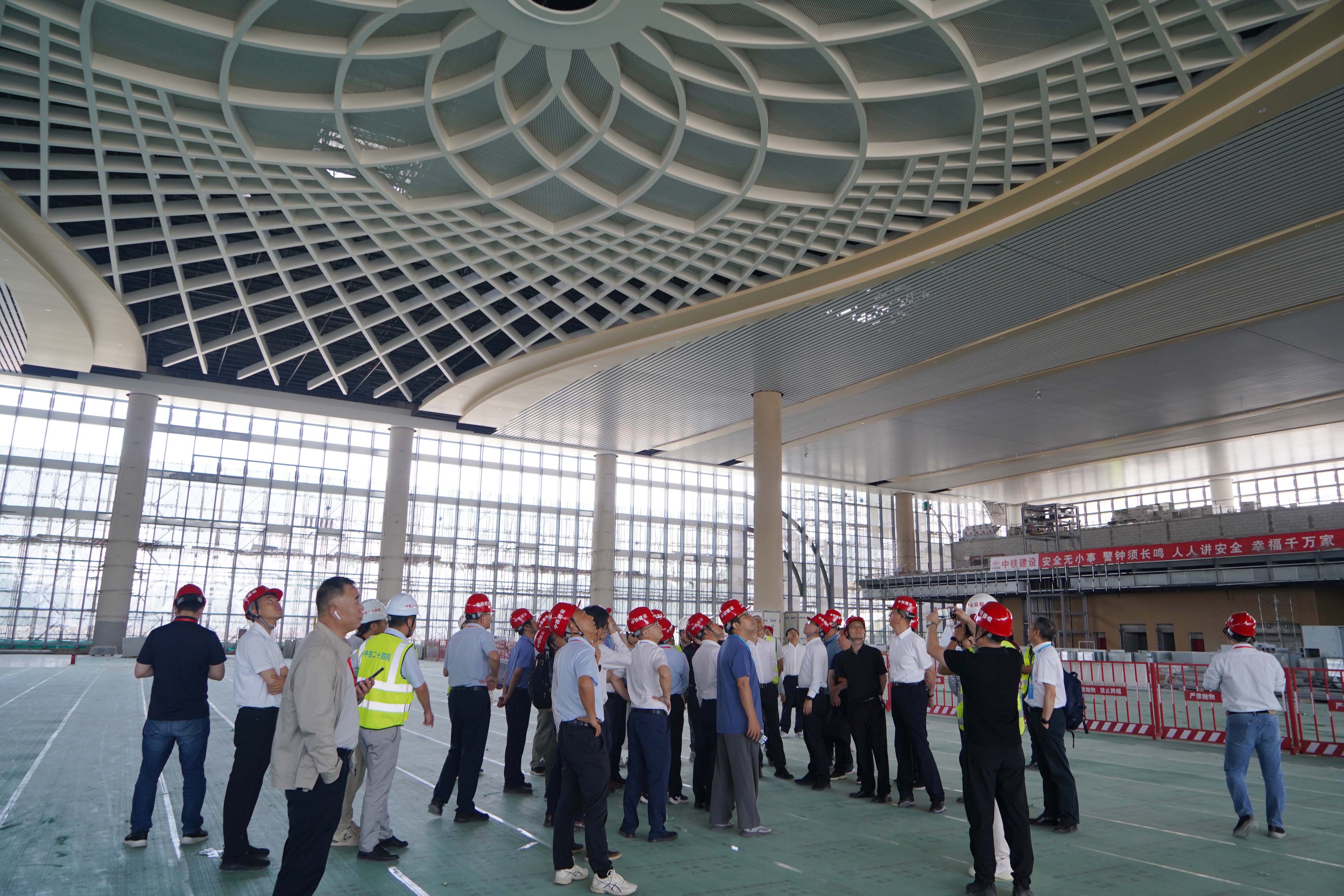 在橫店站,應(yīng)慧剛一行查看了站臺(tái)、候車大廳、進(jìn)站廣廳、落客平臺(tái)以及地下城市通廊等重點(diǎn)區(qū)域,聽取了百盛聯(lián)合集團(tuán)工作人員對(duì)于站房建設(shè)情況的詳細(xì)介紹,對(duì)橫店站房的建設(shè)和文化融入等方面給予肯定。