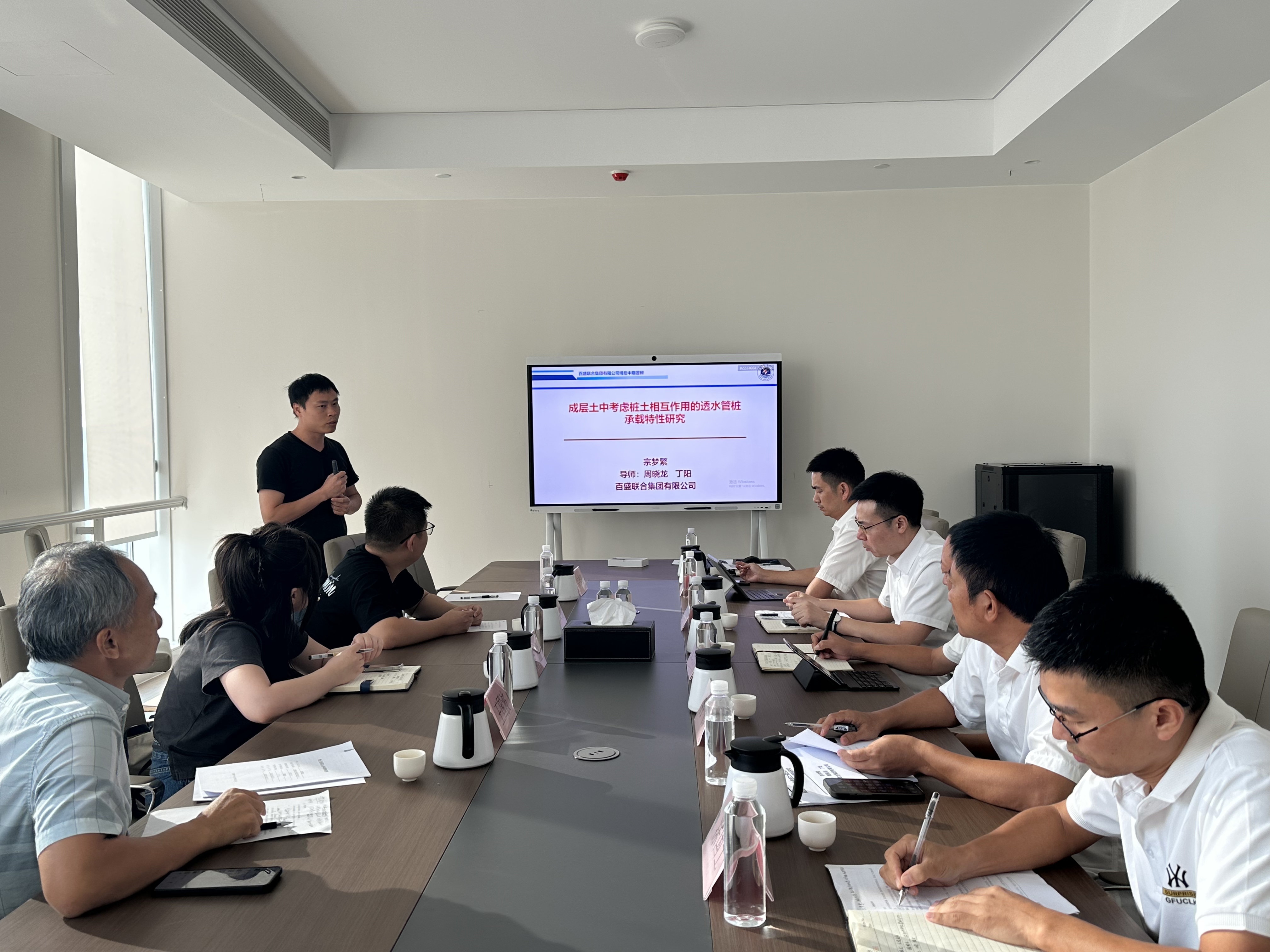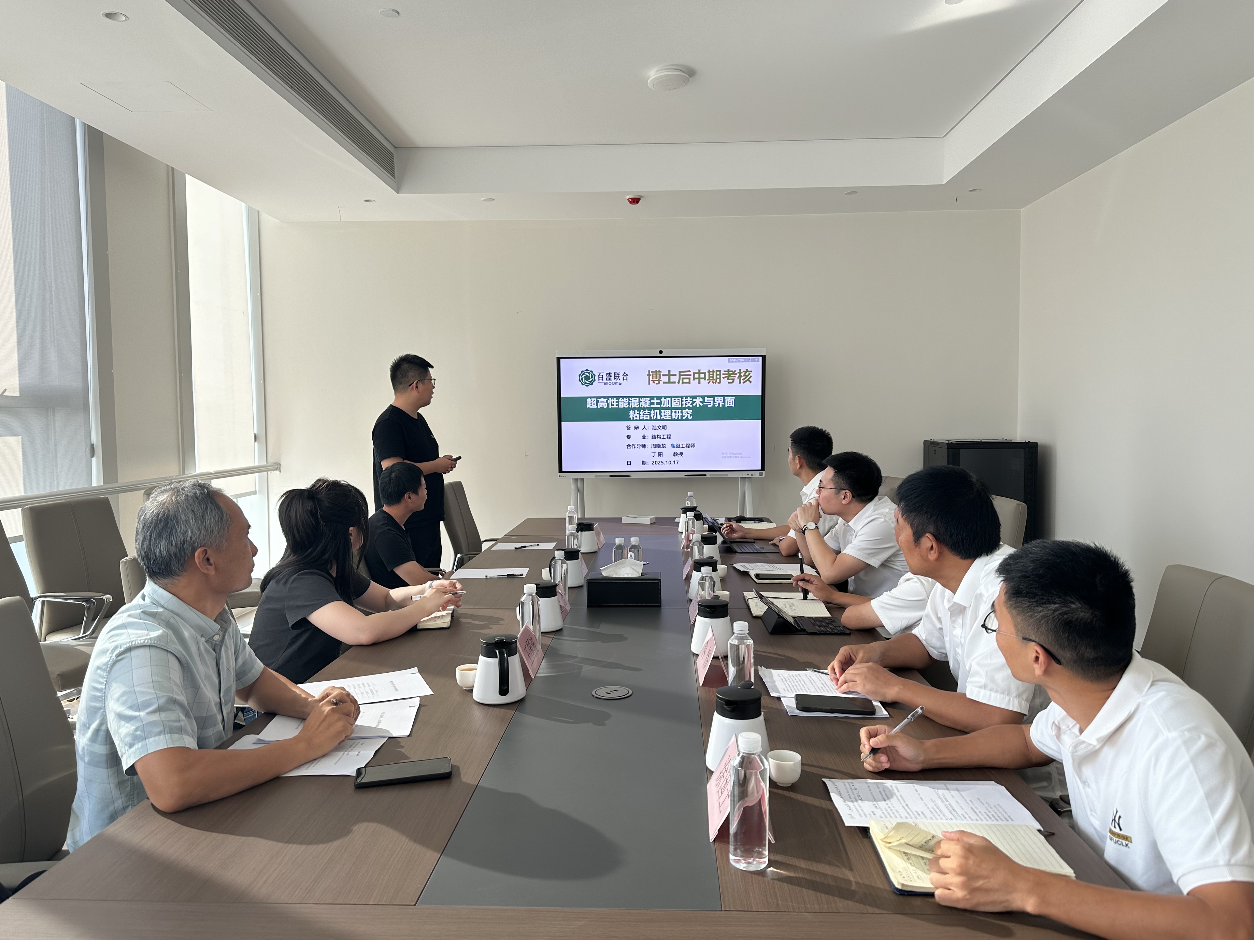 評審會嚴格按照百盛博士后工作站評審程序進行。宗夢繁、浩文明兩位博士依次匯報了在“超高性能混凝土加固技術”、“透水管樁承載特性”課題的研究背景、項目進展情況以及后續(xù)研究計劃等內(nèi)容。